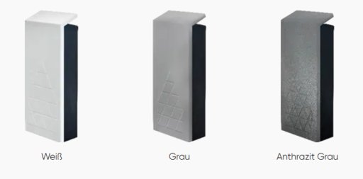 - Sierkap: van gekleurd aluminium met structuur. Verkrijgbaar in 3 kleuren: wit, grijs of antraciet.
